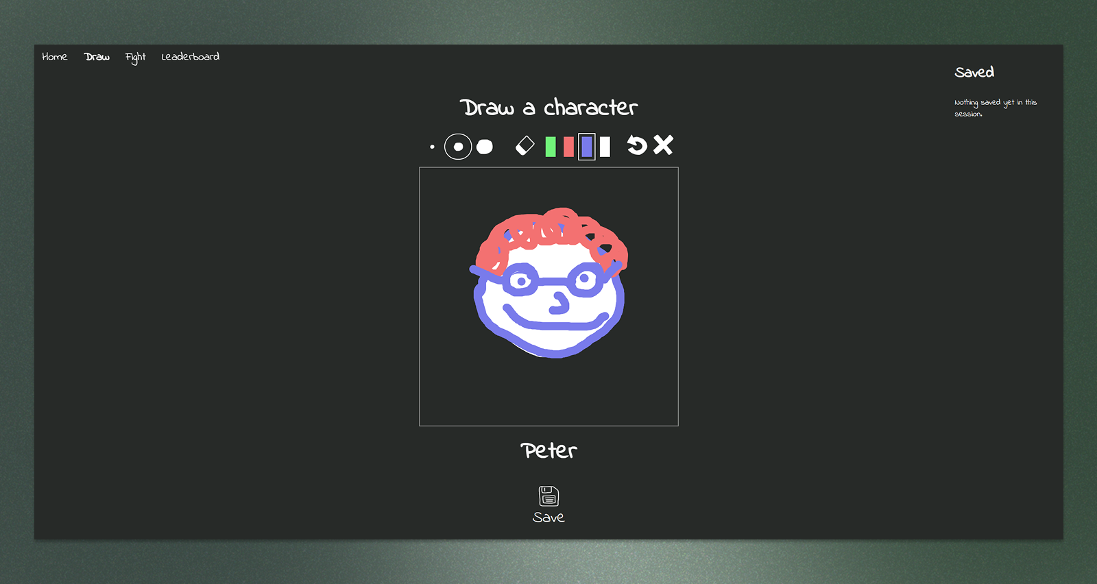 The canvas is intentionally limited. You only get a handful of colors and brush sizes, which I did on purpose to make all the drawings feel like they come from the same world. It also just makes the voting feel fairer when everyone is working with the same tools.